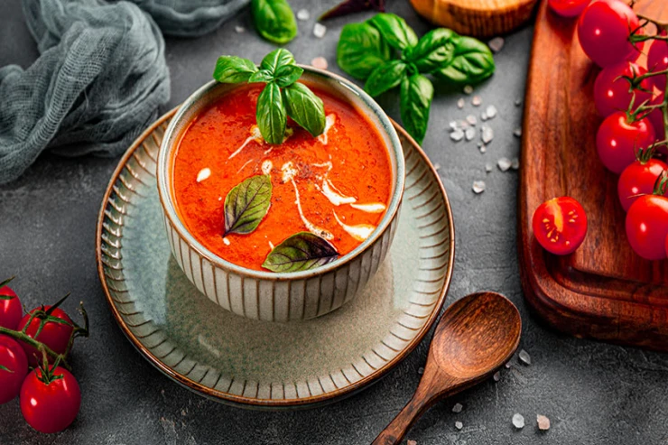 In a big pot boil 4 cups of water, add oil, salt, and whole spices to it. Once the water boils, add washed and drained rice to it. Cook until the rice is done 90% and drain it. Heat oil in a pan and fry the Organic Nation's soya chaap till it's crisp on both sides. In warm milk add saffron strands. Fry the onions, and keep aside a few onions. In the remaining onions add ginger garlic paste and saute for a minute. Now add all spices, salt and tomato puree, cook till oil separates